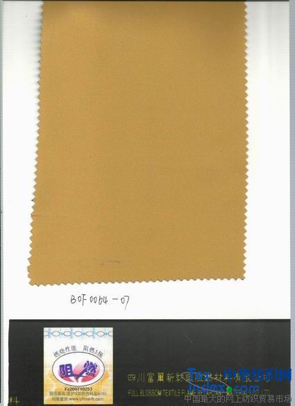 我公司采用阻燃劑單體與聚酯單體共聚生成改性阻燃聚酯切片,再經(jīng)紡絲、紡紗、織造等工藝生產(chǎn)出磷系永久阻燃滌綸機織或針織織物,其阻燃性能達到國家GB20286-2006“阻燃1級”標準。產(chǎn)品阻燃性永久不丟失,且染色性能良好,燃燒時低煙無毒,屬于不含鹵素的環(huán)保型阻燃織物,與普通織物一樣手感柔軟,美觀,有較好的抗靜電性。