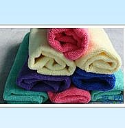 普通毛巾使用時,特別是天然纖維毛巾,將被擦物表面的灰塵、油脂、污垢等直接吸收到纖維內部,使用后殘留于纖維之中,不易清除,用了較長時間后甚至會變硬失去彈性,影響使用。而超細纖維毛巾是把污物吸附于纖維之間(而不是纖維內部),再加之纖維纖度高、密度大,因此吸附能力強,使用后只需用清水或稍加洗滌劑清洗即可