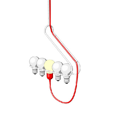 這是一款非常搞怪的吊燈。它雖然也是將燈泡插在燈座里面來(lái)接通電源的,但是與傳統(tǒng)產(chǎn)品不同的是,這款吊燈增加了一個(gè)燈泡架?梢蕴崆皩溆玫臒襞菀徊⒎旁诩茏由希坏┢渲幸粋(gè)燈泡壞了,就可以馬上切換到其他的燈泡,而不必翻箱倒柜的去尋找備用燈泡了。