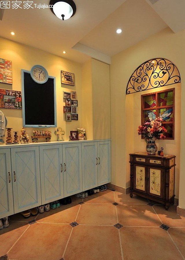 2012-12-10不同于以往常見(jiàn)的地中海風(fēng)格家居,沒(méi)有了經(jīng)典的地中海藍(lán)白配,多了些雅致,多了些浪漫,多了些亮麗色彩的唯美點(diǎn)綴。寬敞的客廳,藍(lán)色雅致的沙發(fā),金屬質(zhì)感的茶幾,弧形設(shè)計(jì)的沙發(fā)背景墻,藍(lán)色壁紙裝飾,黃色拱形設(shè)計(jì)電視背景墻。餐廳玻璃餐桌椅,拱形設(shè)計(jì)的背景墻以及壁櫥,藍(lán)色唯美畫(huà)面裝扮,而樓梯間用來(lái)擺放冰箱,并設(shè)計(jì)...[繼續(xù)閱讀] -